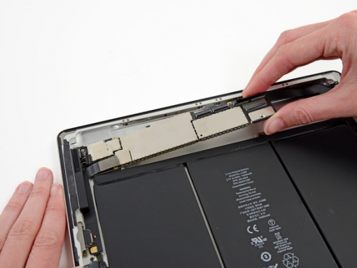 Take the board by the side opposite the lightning connector and gently pull the logic board away from the iPad.