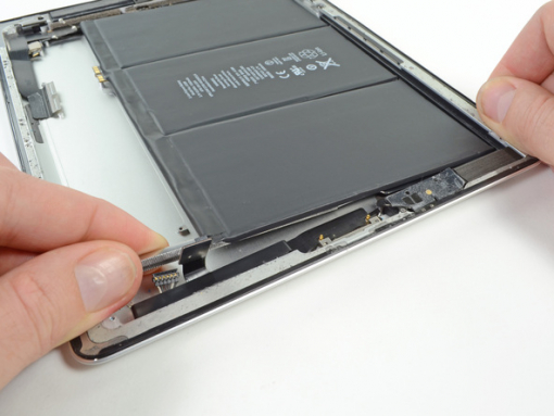 Peel back the digitizer ribbon cable. Separate the cable from the adhesive securing it to the rear aluminum case with the flat end of a spudger.