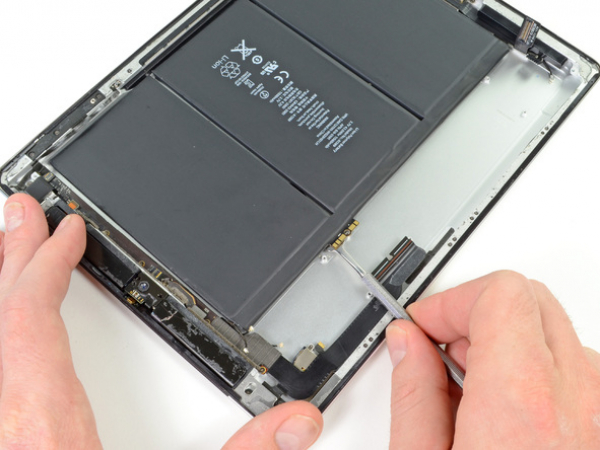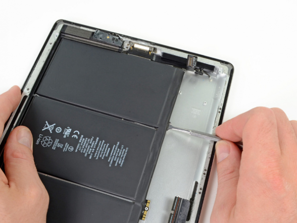 Push the flat end of a metal spudger under the battery. Do this near the bottom of the iPad.