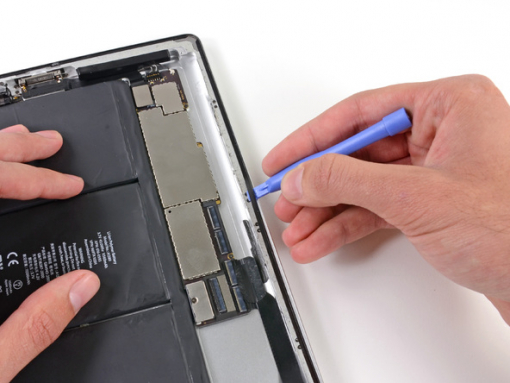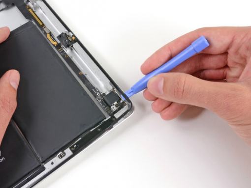 • Keep moving the plastic opening tool along your iPad's right edge.