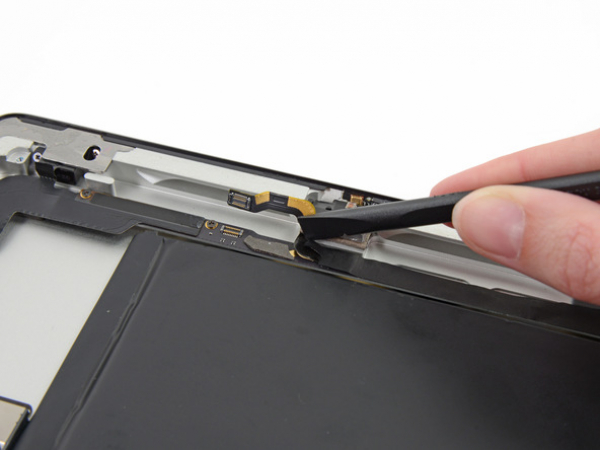 • Peel back the digitizer ribbon cable. Separate the cable from the adhesive securing it to the rear aluminum case with the flat end of a spudger.