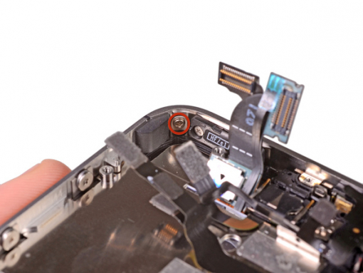Prior to reinstallation of the speaker enclosure assembly's screws, check if the Wi-Fi grounding fingers are installed below the lip in the iPhone's metal case as shown in the third picture.