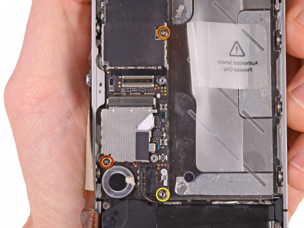 • Carefully lever the logic board, starting from the area closest to the speaker and then carefully slide it from the top part of the iPhone.