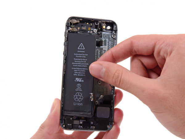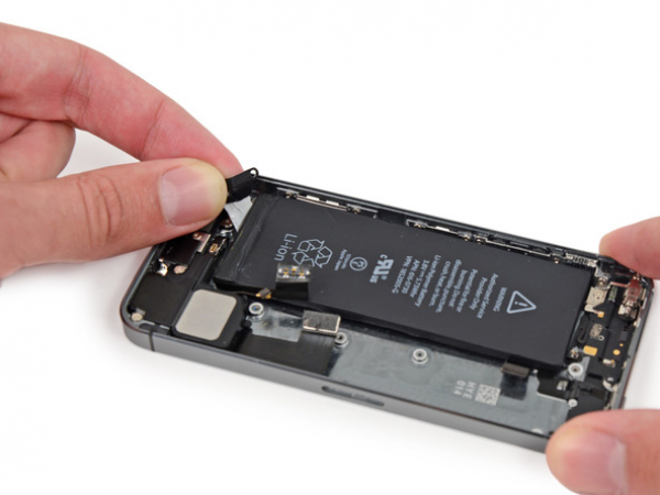 Push the tip of the spudger into the hole in the battery adhesive tab located near the headphone jack.