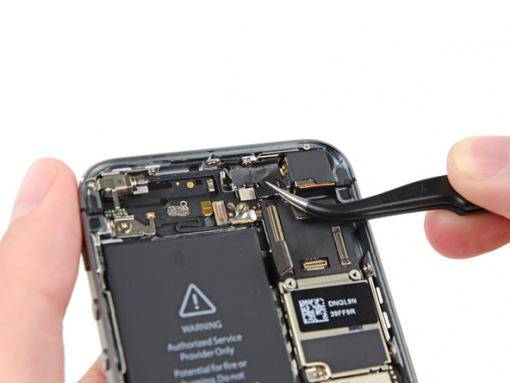 Make sure that you fold the Lightning connector cable so that it's not in the way of the logic board.