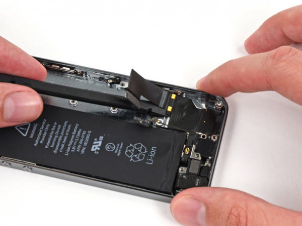 Lift the Lightning connector cable from its socket on the logic board with a spudger.