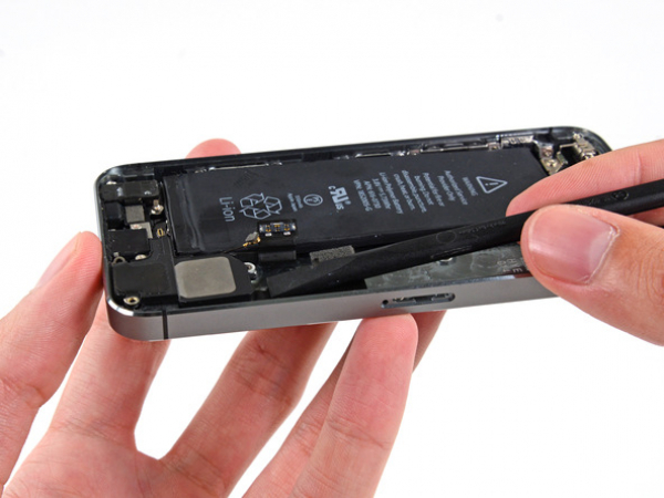 A mild adhesive is holding the Lightning connector data cable and the rear case together.