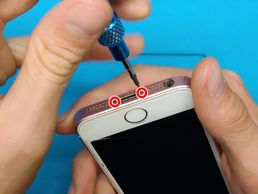 Remove the two 3.9 mm pentalobe screws on the bottom edge of the iPhone.