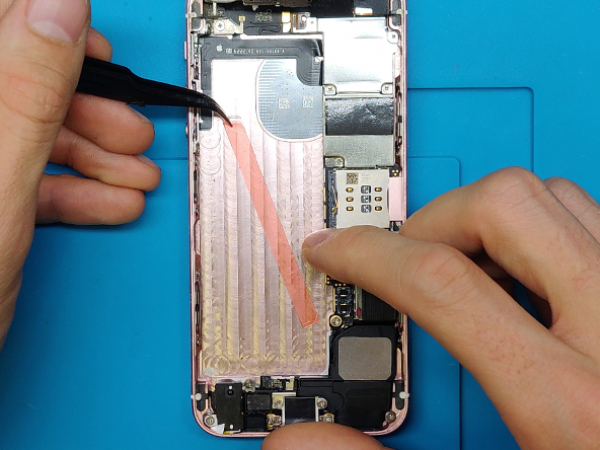 Remove also the iPhone's metal battery connector bracket.