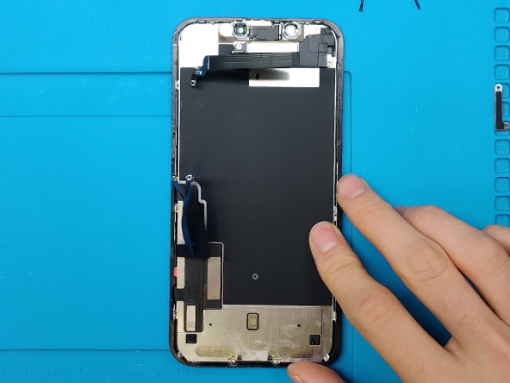 It is still not the time to completely detach the display, since a few fragile ribbon cables connect it to the iPhone's mother board.
