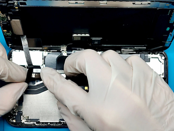 - Remove the screws securing the logic board cover bracket and remove the bracket. - Remove the screws securing the display connector bracket and remove the bracket. - Carefully use a spudger or a tweezer to disconnect the LED panel connector, and pry the digitizer cable connector up from its socket. - Lift the cable until he separates. - Lift up the display. Tip: - Avoid damaging your iPhone by keeping track of each screw's position and putting them back where they came from.