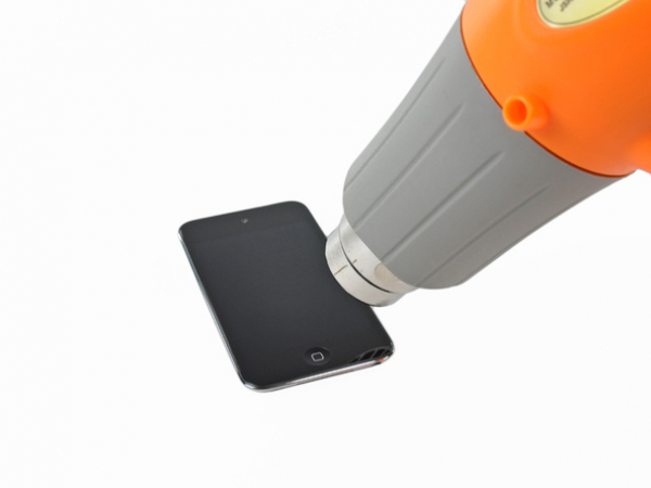 Set the heat gun on "low" mode and begin heating the lower portion of the iPod Touch near the home button.