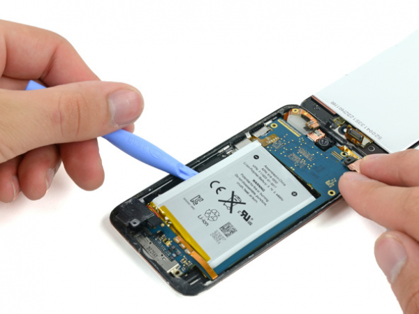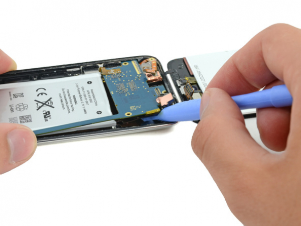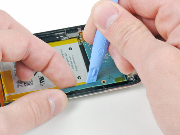 Gently lift the edge of the headphone jack nearest the battery out of its recess by using our opening tool.