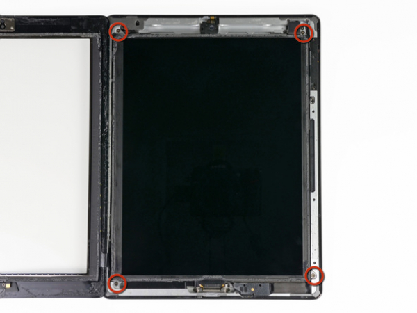 Four 2 mm Phillips #00 screws securing the LCD to the aluminium frame need to be removed.