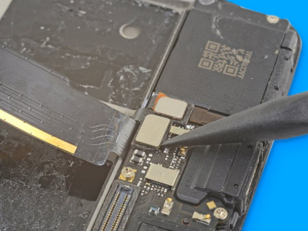 - Insert the point under the rectangular contact pad with tweezers, then pry and loosen it.