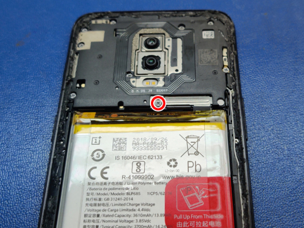 Remove the one 3mm Phillips #00 screw holding the metal bracket for the battery connector.