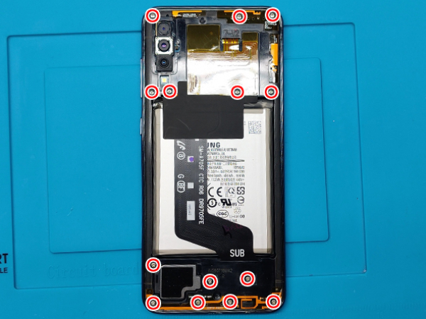• Remove a total of fourteen Phillips #00 screws that secure the phone's midframe.