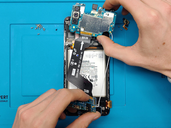 • Pay attention to the thin antenna cable and flex cables that connect the MAIN and the SUB board.