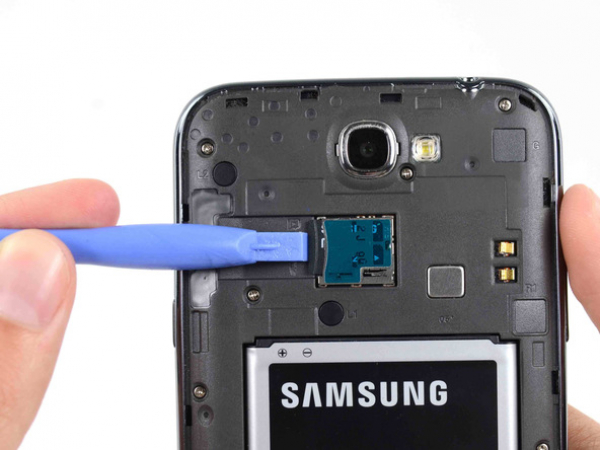 • Press the microSD card (if you have one) deeper into its slot with the flat end of a spudger (or your fingernail) until you hear a click.