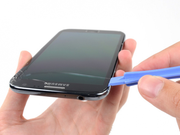 • When you get to the corner of your phone, gently move the plastic opening tool around it.