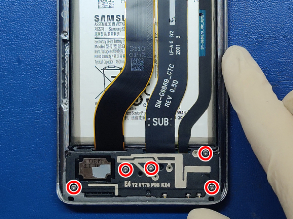 Remove the five 4.0mm Phillips screws securing the board with the USB-C charging socket.