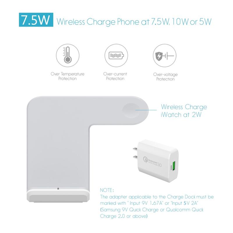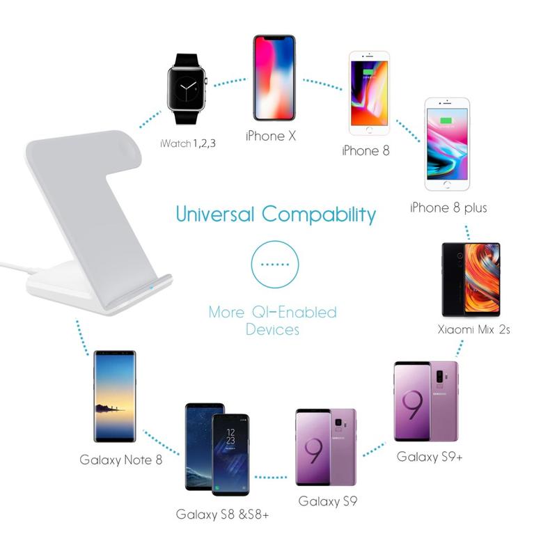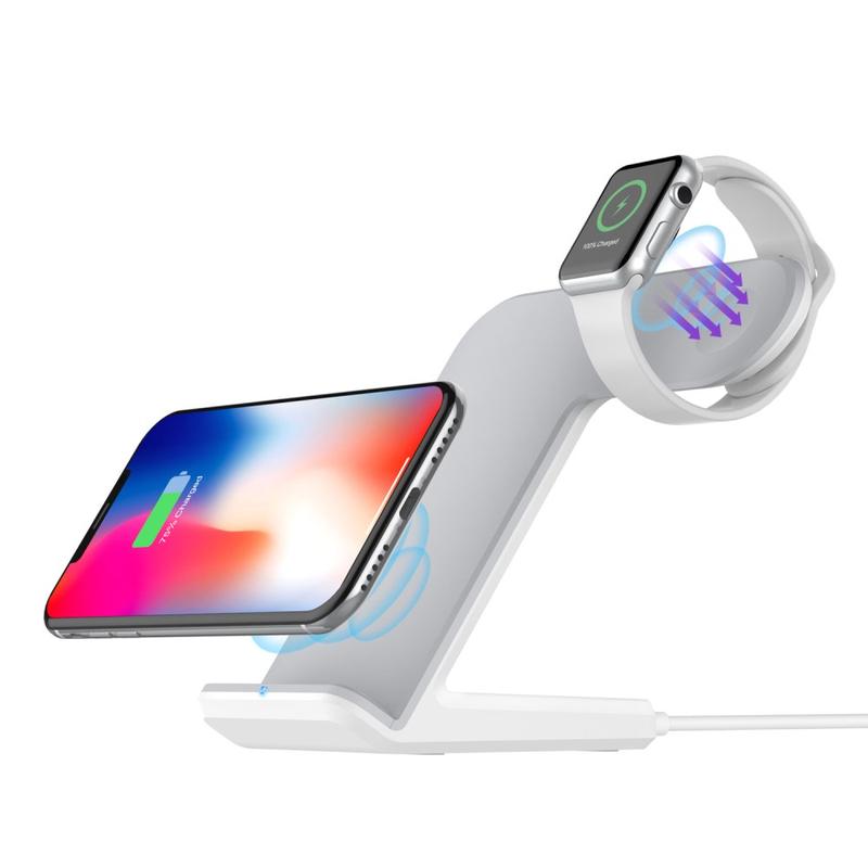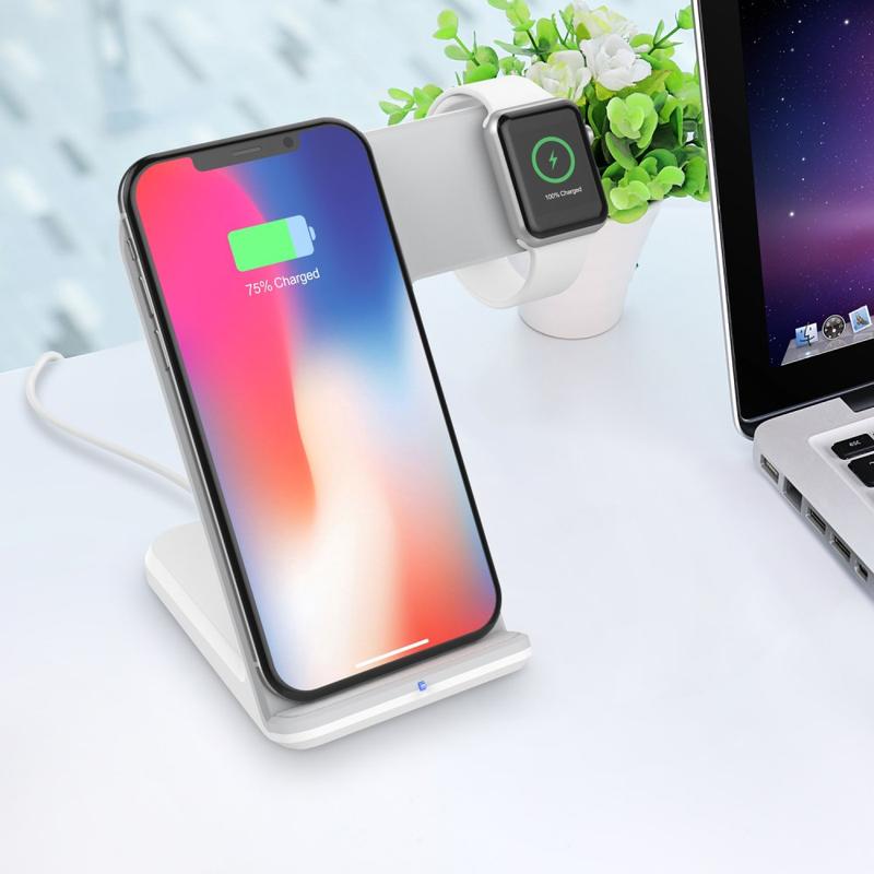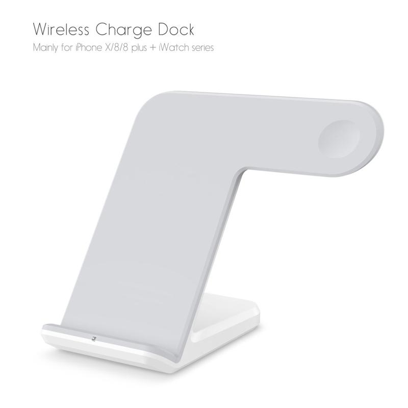 • F11 Stojánek pro bezdrátové nabíjení 2 v 1 pro chytré hodinky s mobilním telefonem Qi Wireless Fast Charger pro iPhone Samsung Apple Watch - bílý