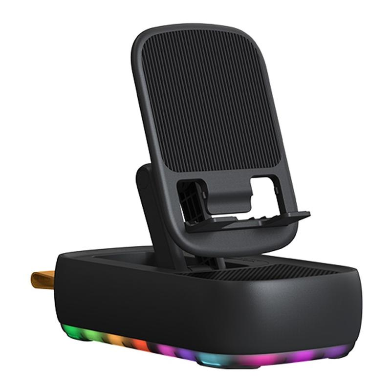 F15 3-in-1 Foldable Phone Holder with Bluetooth Speaker and 1200mAh Power Bank - RGB Lights, USB-C and USB-A Ports