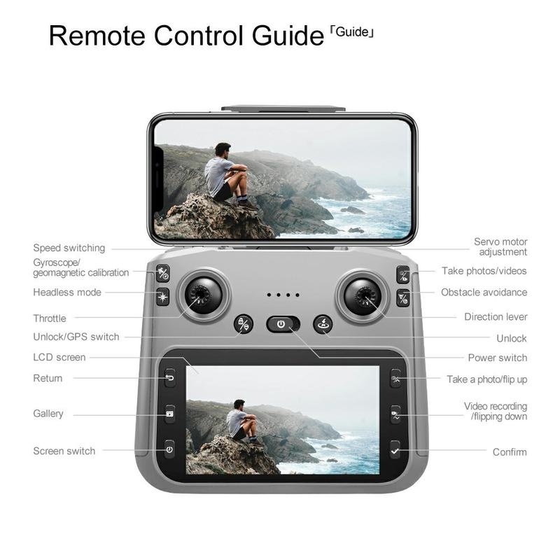 The F208 foldable drone is designed for users who want a feature-rich quadcopter with practical flight assistance, real-time viewing, and easy portability. With GPS positioning, intelligent obstacle avoidance, and a remote control with a built-in 4.5-inch screen, it offers a more convenient flying experience for both newer users and hobby pilots. Its foldable design makes it easier to carry, while the 720P camera with adjustable angle helps capture everyday aerial photos and videos from a fresh perspective.
