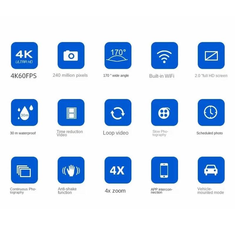 F300AB-R 2 Inch 4K WiFi Action Camera with Touch Screen and 30 m Underwater Housing