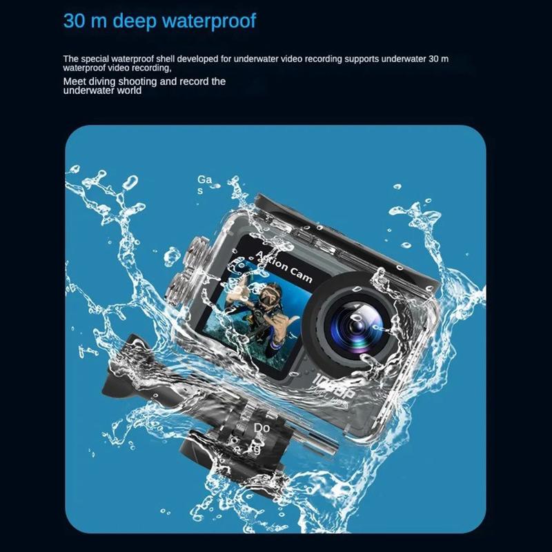 The included waterproof case ensures protection underwater up to 30 meters, making it perfect for water sports and outdoor activities