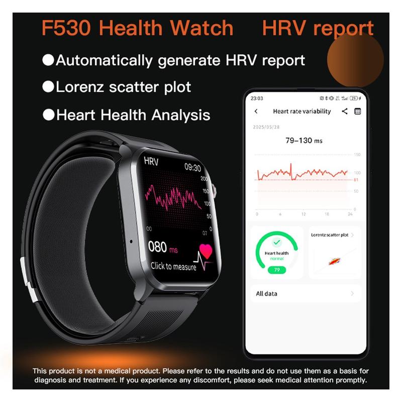 The F530 Air Pump Blood Pressure Smart Watch is designed for users who want deeper insight into their physical and mental well-being. With integrated ECG monitoring, 24-hour dynamic heart rate tracking and oscillometric blood pressure measurement powered by a silent Murata piezoelectric microblower, it delivers detailed health data directly on your wrist. Combined with scientific sleep analysis, stress and emotion management, and multi-parameter health tracking, the F530 functions as a compact daily health check.
