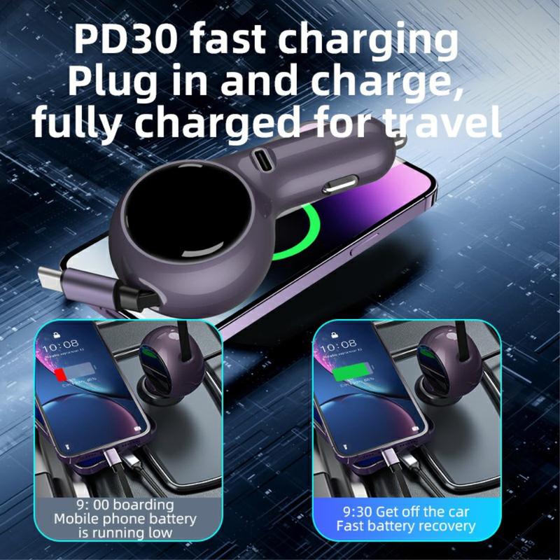 Fast Charging Car Charger with USB-C Retractable Cable K2