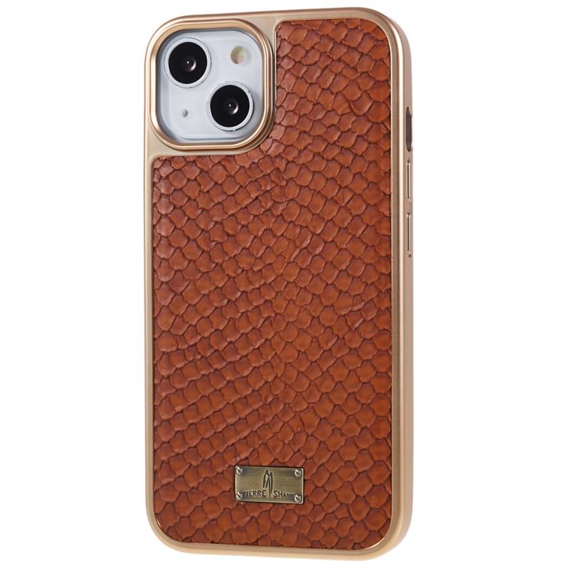 FIERRE SHANN pro iPhone 14 Plus hadí textura TPU pouzdro na telefon potažené PU kůží, galvanicky pokovené, nárazuvzdorný kryt proti poškrábání