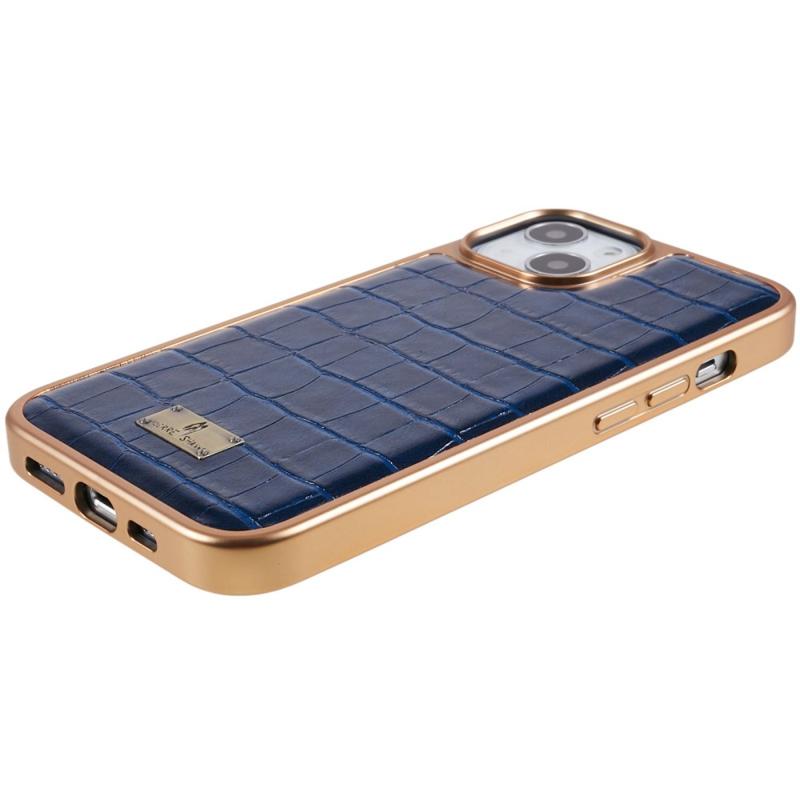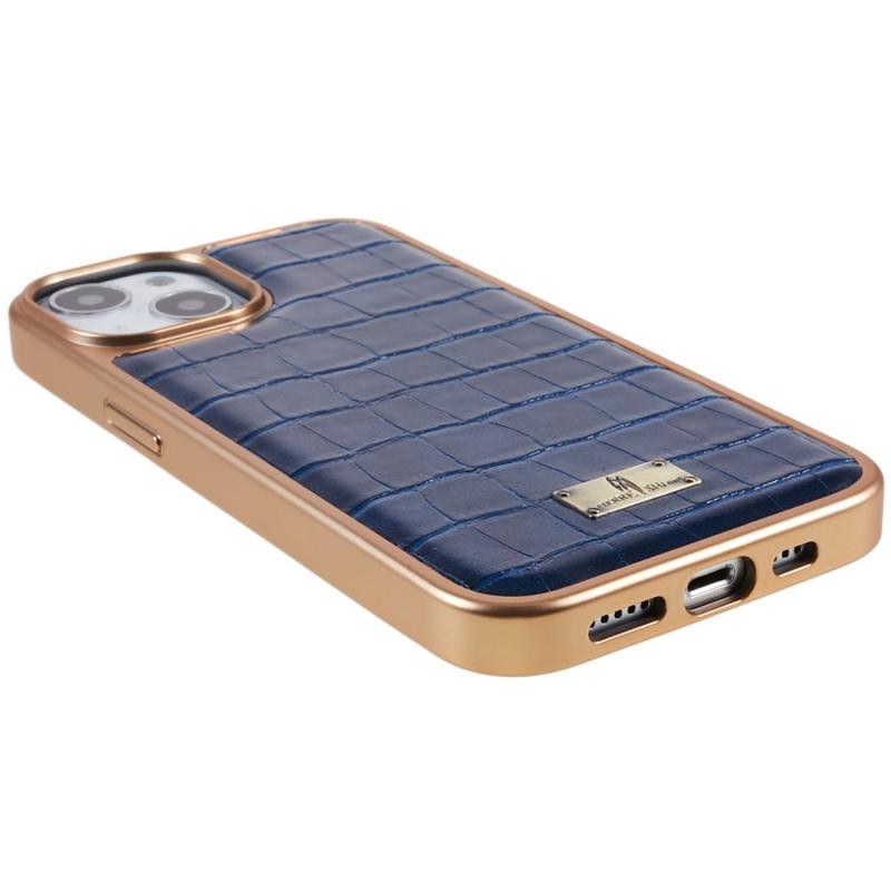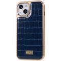 FIERRE SHANN Pro iPhone 14 Plus Krokodýlí textura Zadní kryt TPU potažený PU kůží na chytrý telefon Galvanizovaný ochranný kryt