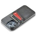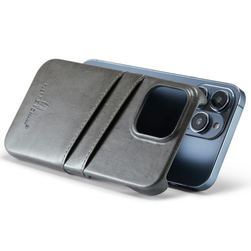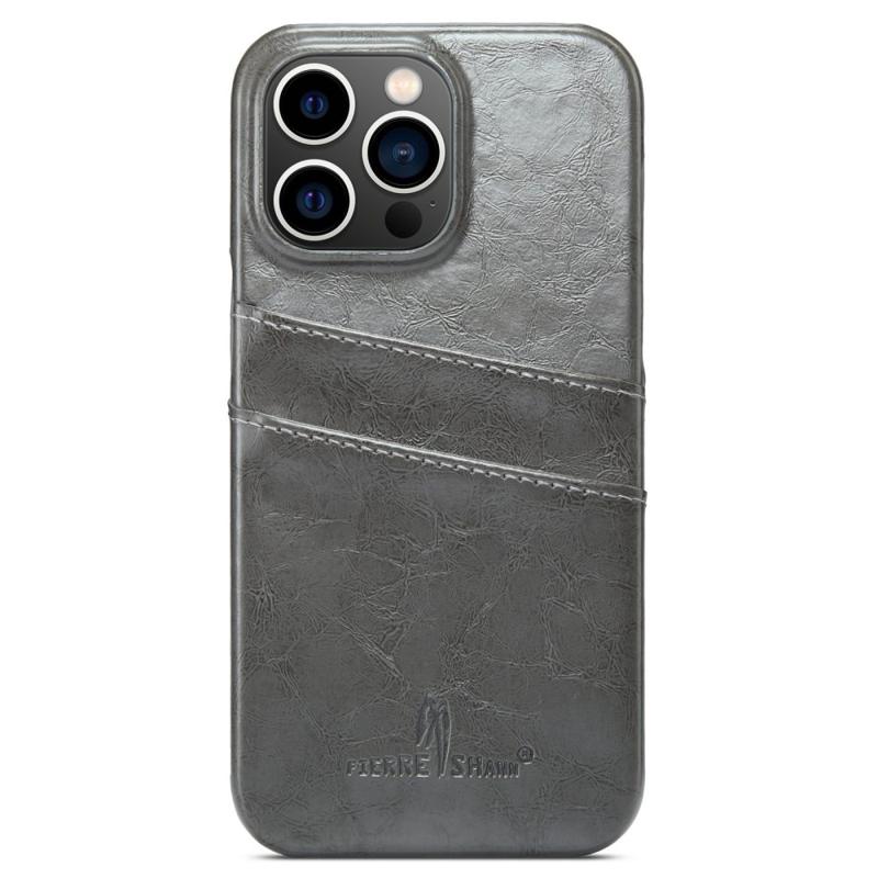 Fierre Shann iPhone 14 Pro Potažené Pouzdro s Držákem na Karty - Šedý