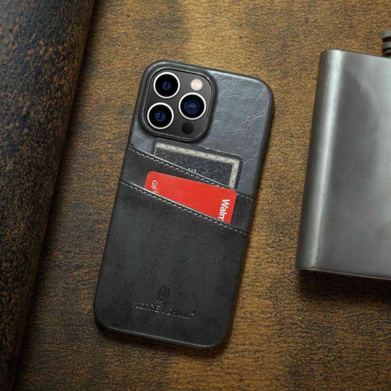 • FIERRE SHANN Pro iPhone 14 Pro Voskovaná PU kůže potažená pevným pouzdrem na telefon PC Zadní kryt držáku karty