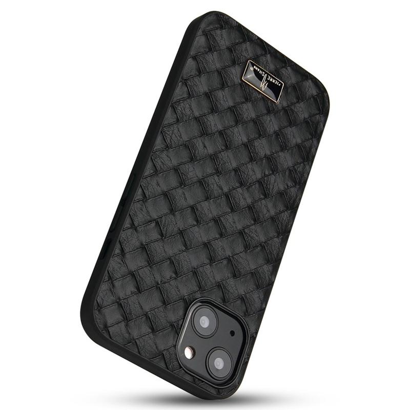 FIERRE SHANN Pro iPhone 14 Ultra tenké pouzdro na telefon odolné proti poškrábání Hardware Dekor Zadní kryt TPU potažený PU kůží