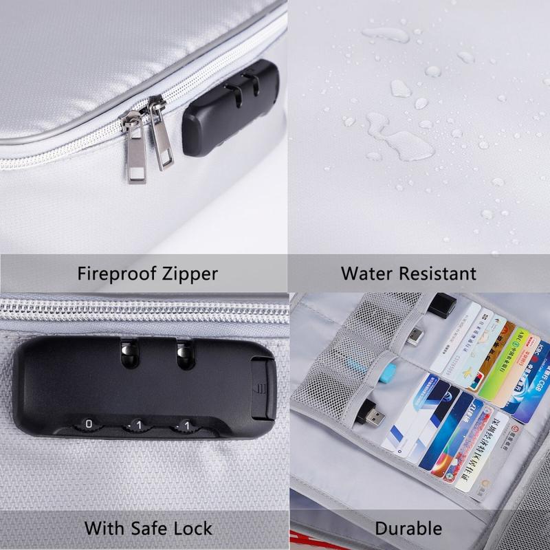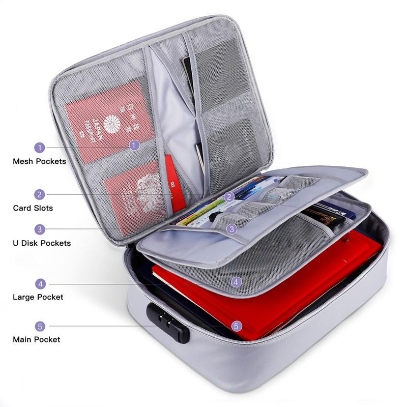 Fireproof Water-Resistant Document Bag / Organizer with Safe Lock - 36x27x10cm