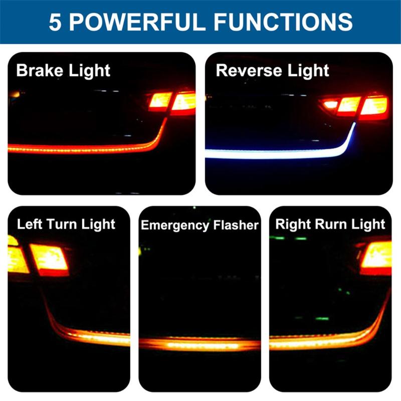 Flexible LED Tailgate Light Strip 120cm - Waterproof Rear Brake/Reverse/Turn Signal Light Bar for Cars & SUVs, 12V