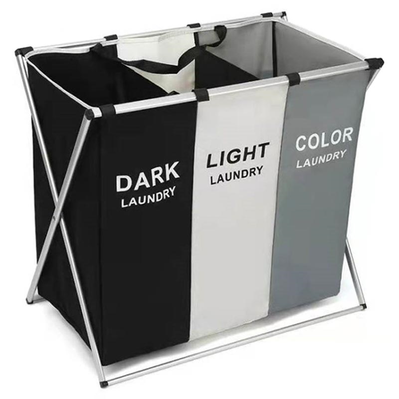 This Foldable 3-Cell Laundry Hamper helps you organize and separate clothes effortlessly. With three labeled compartments and a strong aluminum frame, it keeps dirty laundry sorted and neatly stored while adding a clean and modern look to your home.