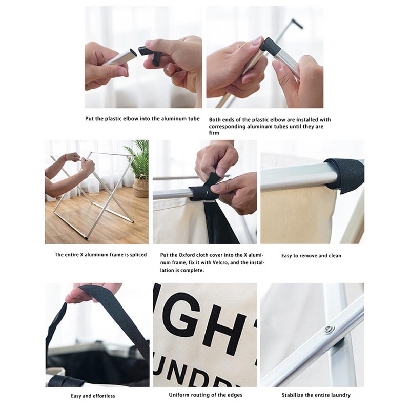 The lightweight yet strong aluminum frame provides stability and ensures the hamper keeps its shape even when filled.