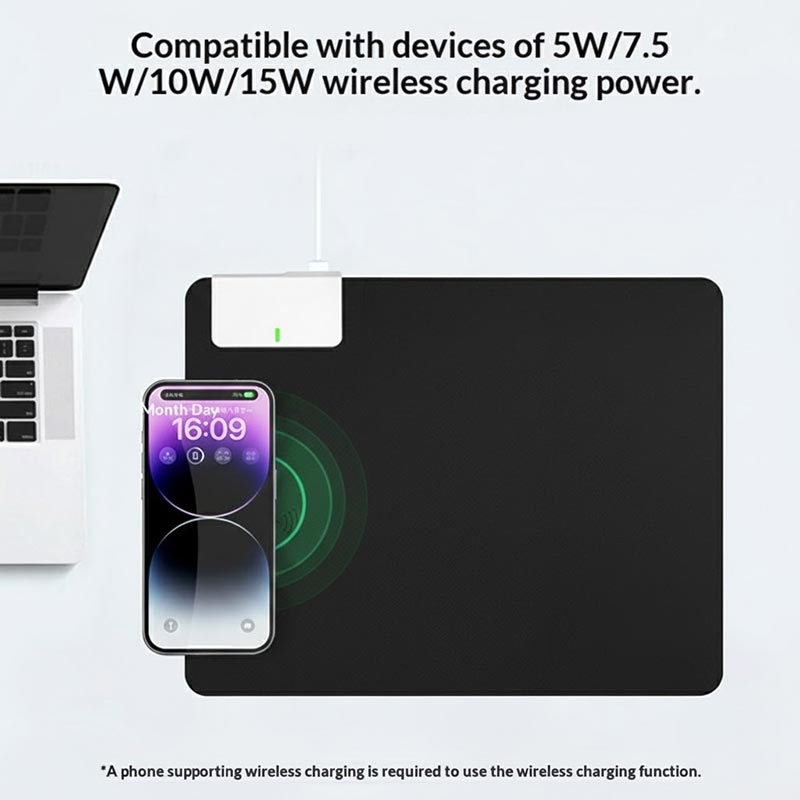 – Wireless mouse pad with integrated 15W fast charging