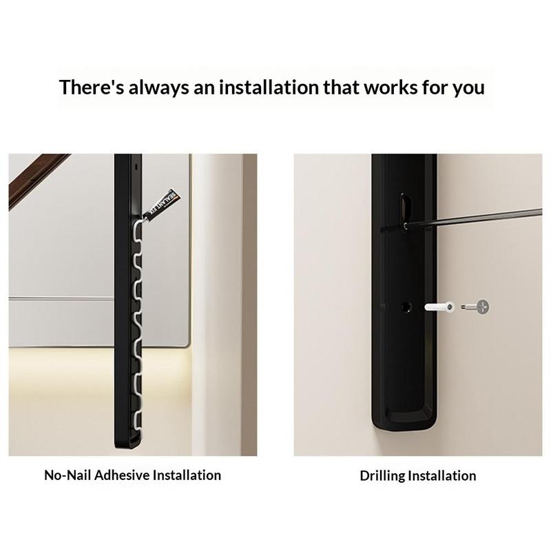 Constructed from durable space aluminum with reinforced rods, the rack offers stable support for everyday laundry. It can be installed using strong adhesive backing for no-drill installation or mounted with screws for additional stability, making it suitable for a variety of wall surfaces.