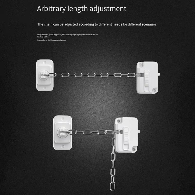 The FT756 Adjustable Chain Safety Lock is designed to secure windows, drawers, cabinets, and sliding doors, helping to prevent accidental falls or injuries for infants and pets. With its strong stainless steel chain and durable ABS construction, it provides reliable protection without compromising ventilation or convenience.