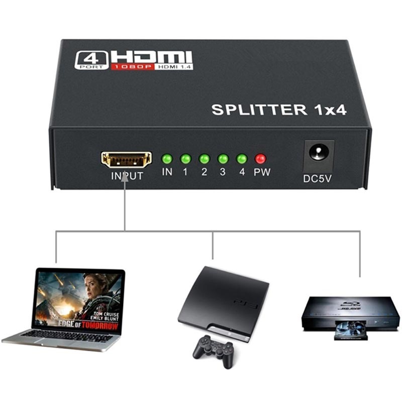 Velmi praktický rozprašovač HDMI s jedním vstupem a čtyřmi výstupy! S tímto HDMI Splitter 1x4 budete moci distribuovat jeden signál HDMI z vašeho notebooku, DVD, set-top boxu nebo herní konzole až do čtyř HDMI televizorů nebo projektorů současně. Přestože přenášíte jeden signál HDMI na čtyři, můžete si vychutnat videa v rozlišení Full HD s HD Sound, protože Splitter HDMI neztrácí obrázek a kvalitu zvuku.