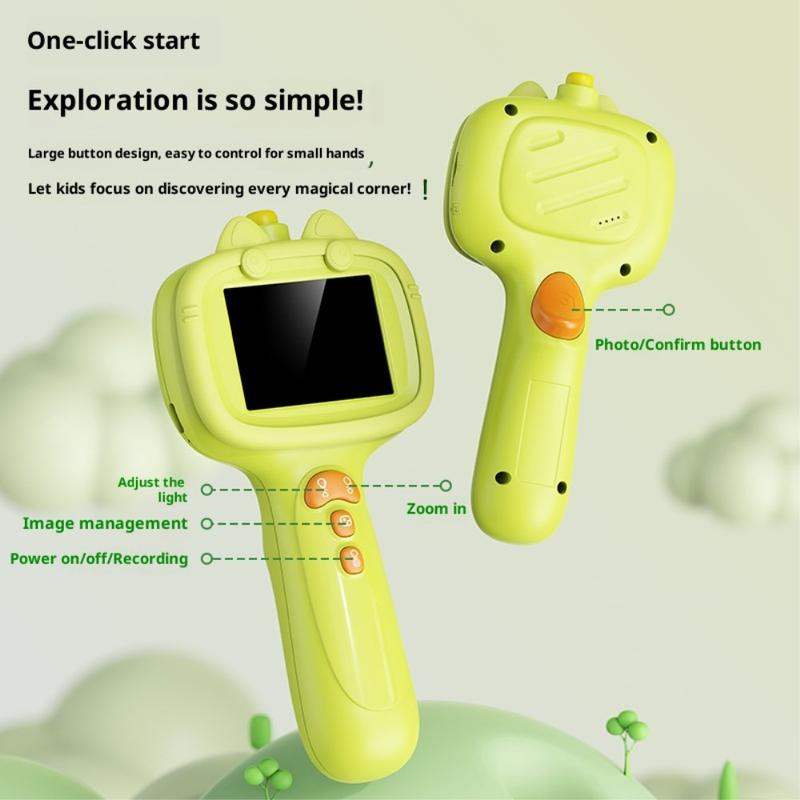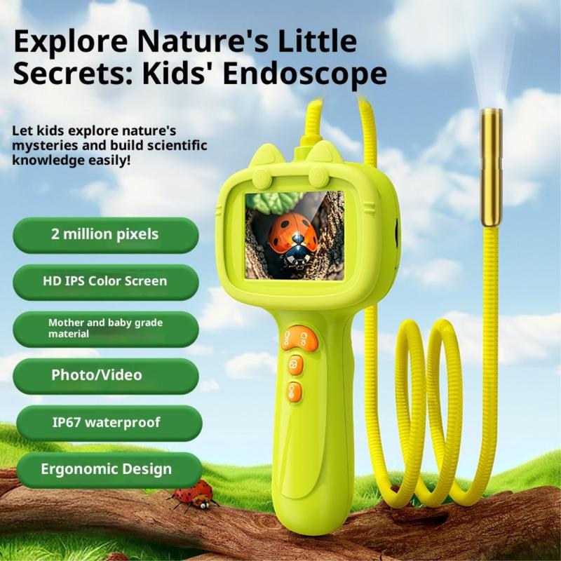 The G21 kids handheld endoscope features a 2MP CMOS sensor paired with 8+1 LED lights, delivering clear, bright, high-definition visuals. Children can observe small objects, plants, insects, minerals and hidden spaces with impressive detail—perfect for early science education and hands-on discovery.