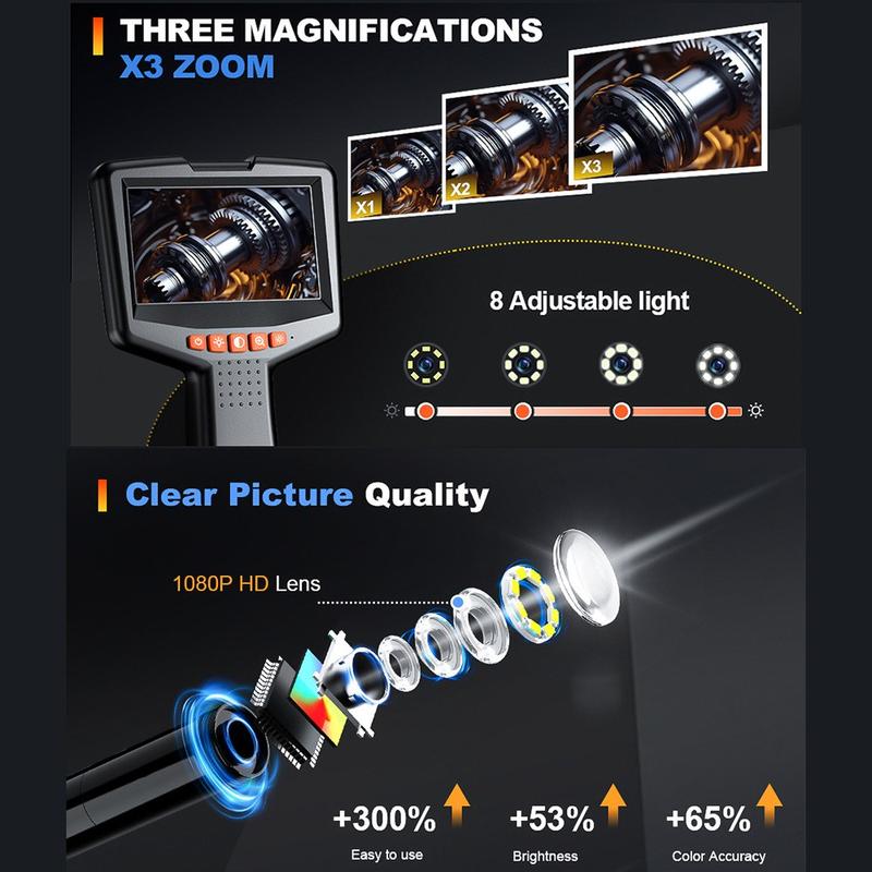 The flexible cable allows you to inspect deep pipelines, ducts, machinery interiors and inaccessible locations with ease-perfect for both professional technicians and DIY users.