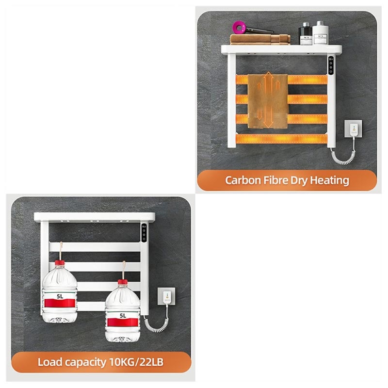 G50 Electric Heated Towel Warmer Rack - Adjustable Temperature, Fast-Drying Carbon Fiber Heating, IPX5 Waterproof Bathroom Shelf
