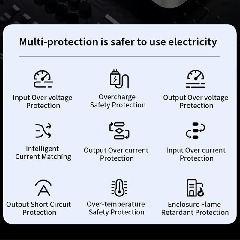 - Intelligent Charging - Smart IC technology ensures safe and efficient charging with over-current, over-voltage, and short circuit protection