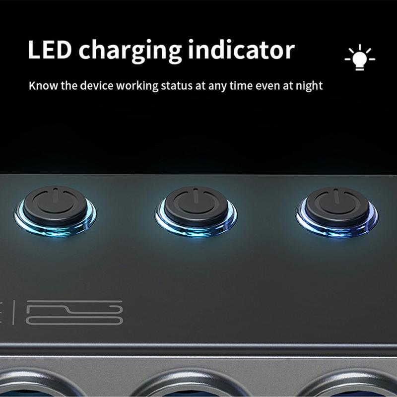 - 7 Charging Ports in Total - Includes 3 cigarette lighter sockets, 3 USB-A ports, 1 USB-C, and 1 PD fast charging port